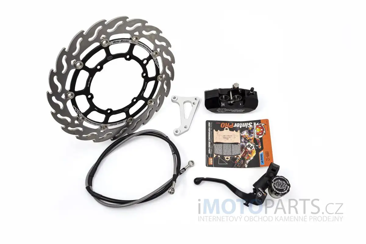 SM RACE KIT: 320mm PLOVOUCÍ PLAMEN, BRZDOVÉ DESTIČKY/VEDENÍ,4PÍSTOVÝ TŘMEN/DRŽÁK, RADIÁLNÍ PŘEDNÍ VÁLEC